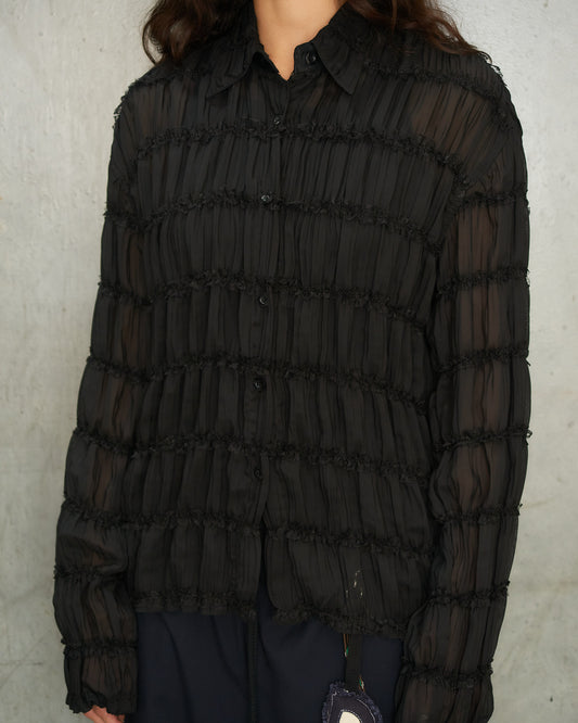 Black Gathered Chiffon Shirt