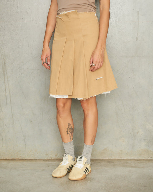 Beige Pleated Mini Skirt