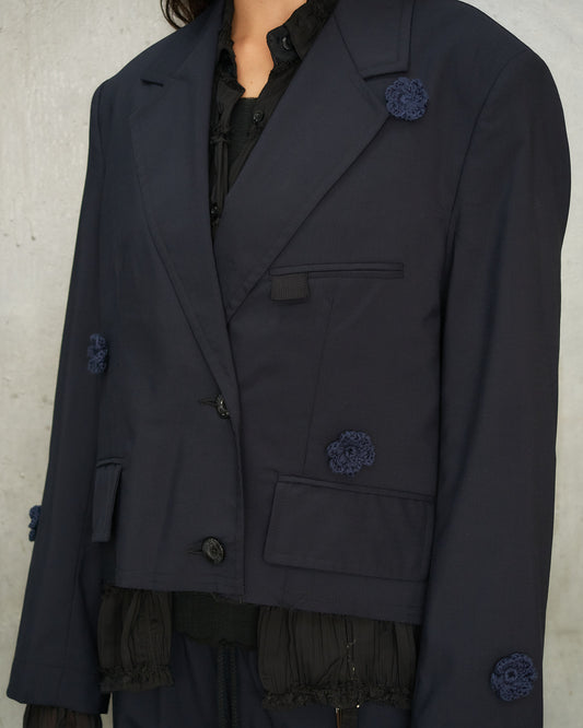 Navy Daisy Cropped Blazer