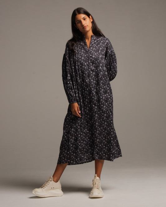 Sold outFloral Pattern Shirt Dress Charcoal