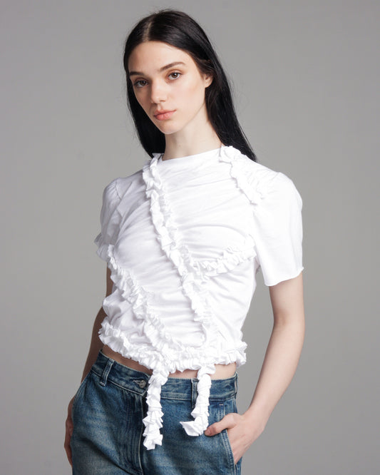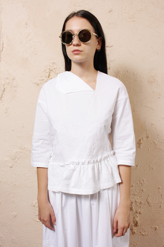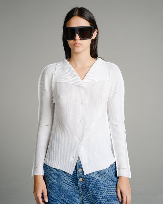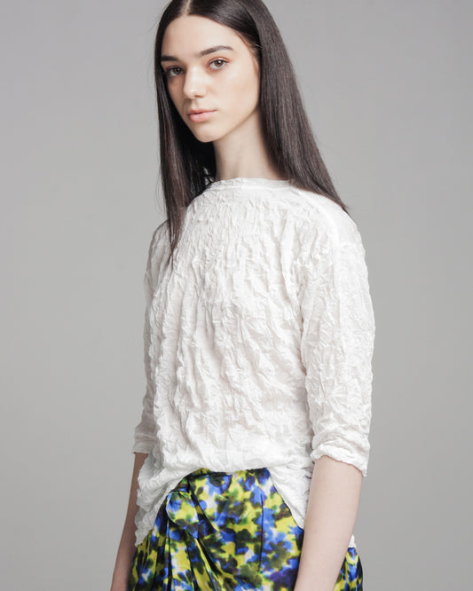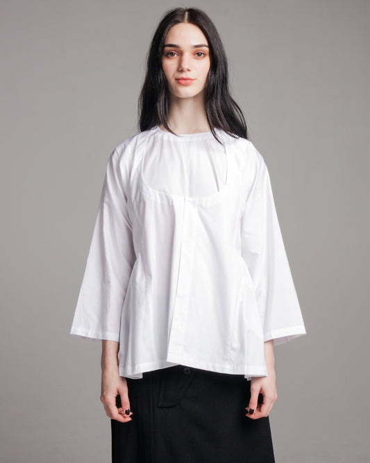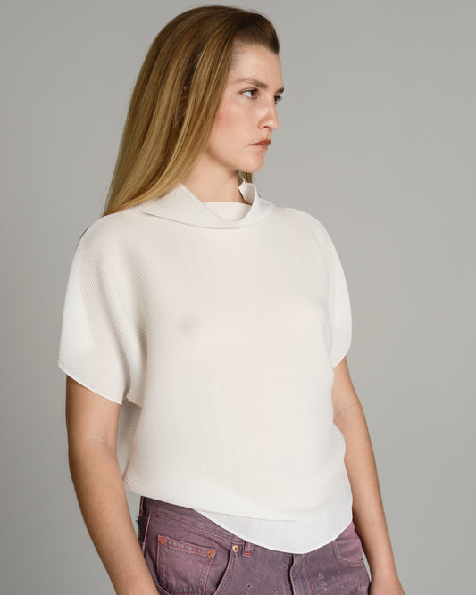 Sold outWhite Cut-Off Collar Wrinkle Blouse