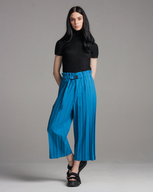 Sold outWide Pleated Blue Cropped Pant