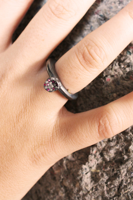 Sold outWoina Icy Grey Diamond & Rubies Ring