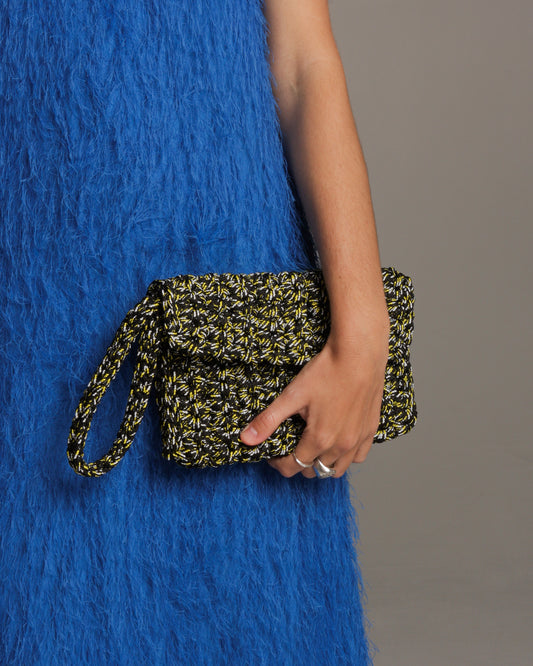 Sold outAlia Black and Yellow Crochet Clutch