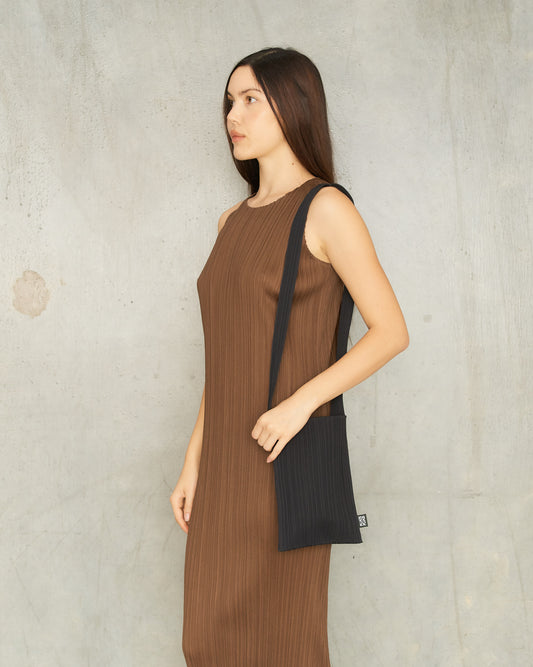 Black Crepe Knit Pleat Shoulder Bag