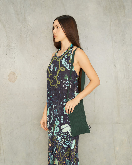 Deep Green Crepe Knit Pleat Shoulder Bag