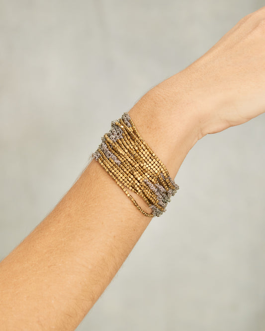 Globus Silver Icy Diamond Brown Bead Bracelet