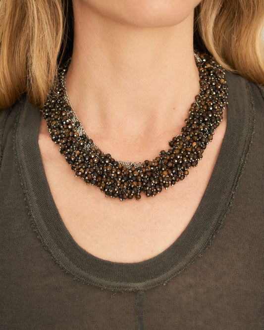 Pe Smoky Quartz Icy Grey Diamond Necklace