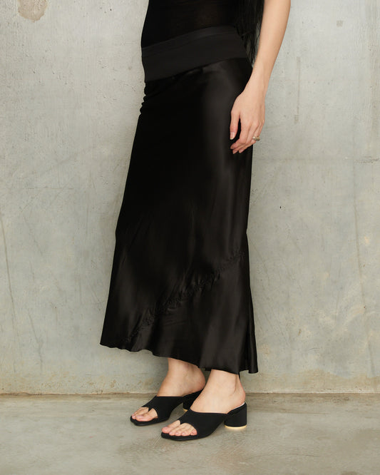 Black Satin Calf Bias Skirt