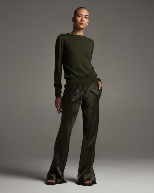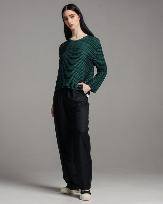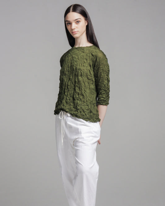 Sold outGreen Cut-Off Collar Wrinkle Blouse