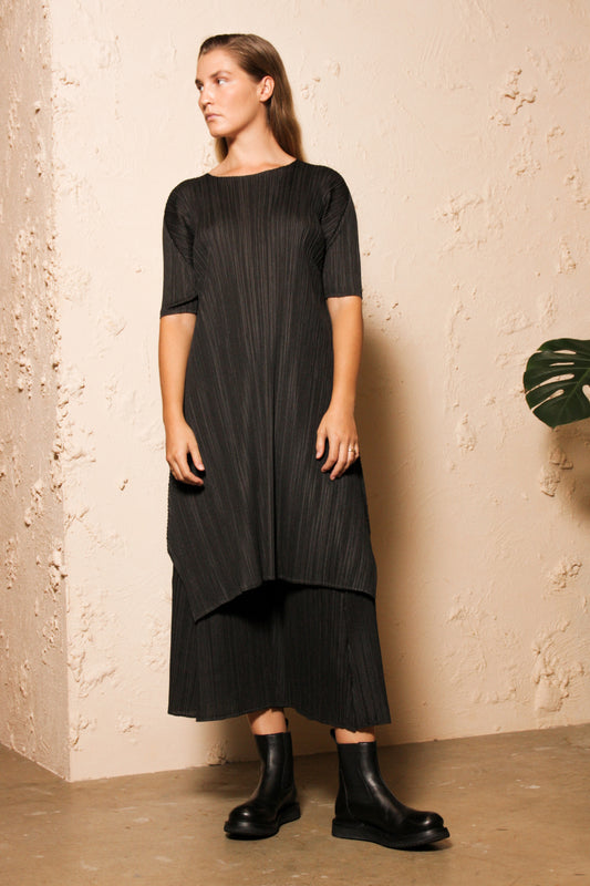 Sold outMellow Pleats Charcoal Dress