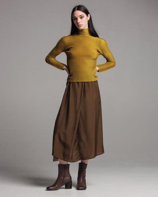 Sold outMustard Longsleeve Micropleat Top
