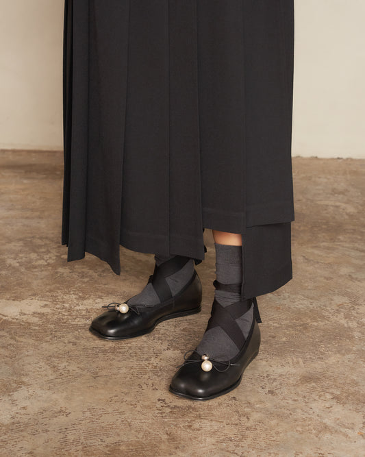 Black Heart Toe Ribbon Bow Ballerina Shoe