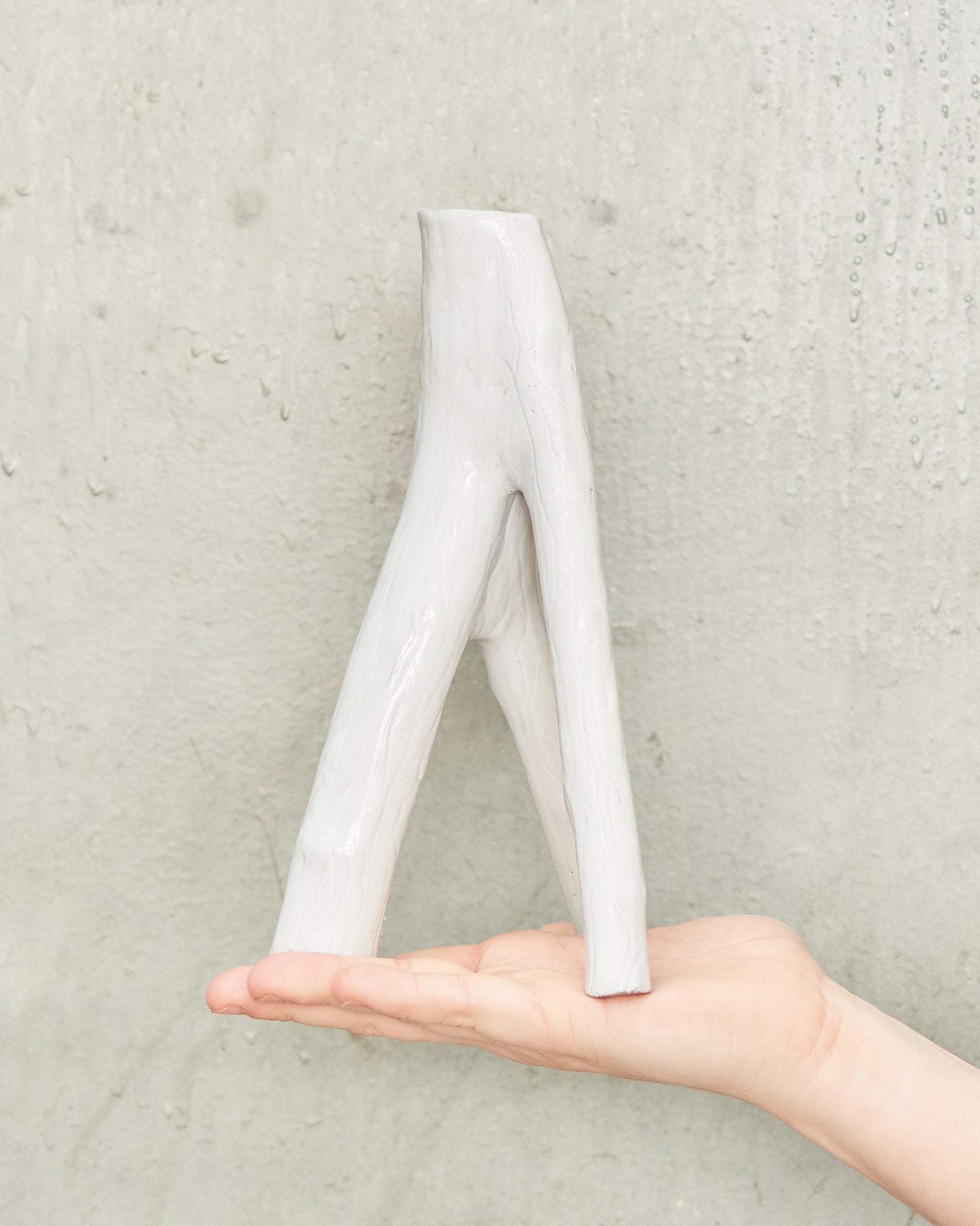 Tree Candlestick Tripod by Astier de Villatte. Elegantly sculpted branches form a three-legged base, supporting a single candlestick with naturalistic grace.