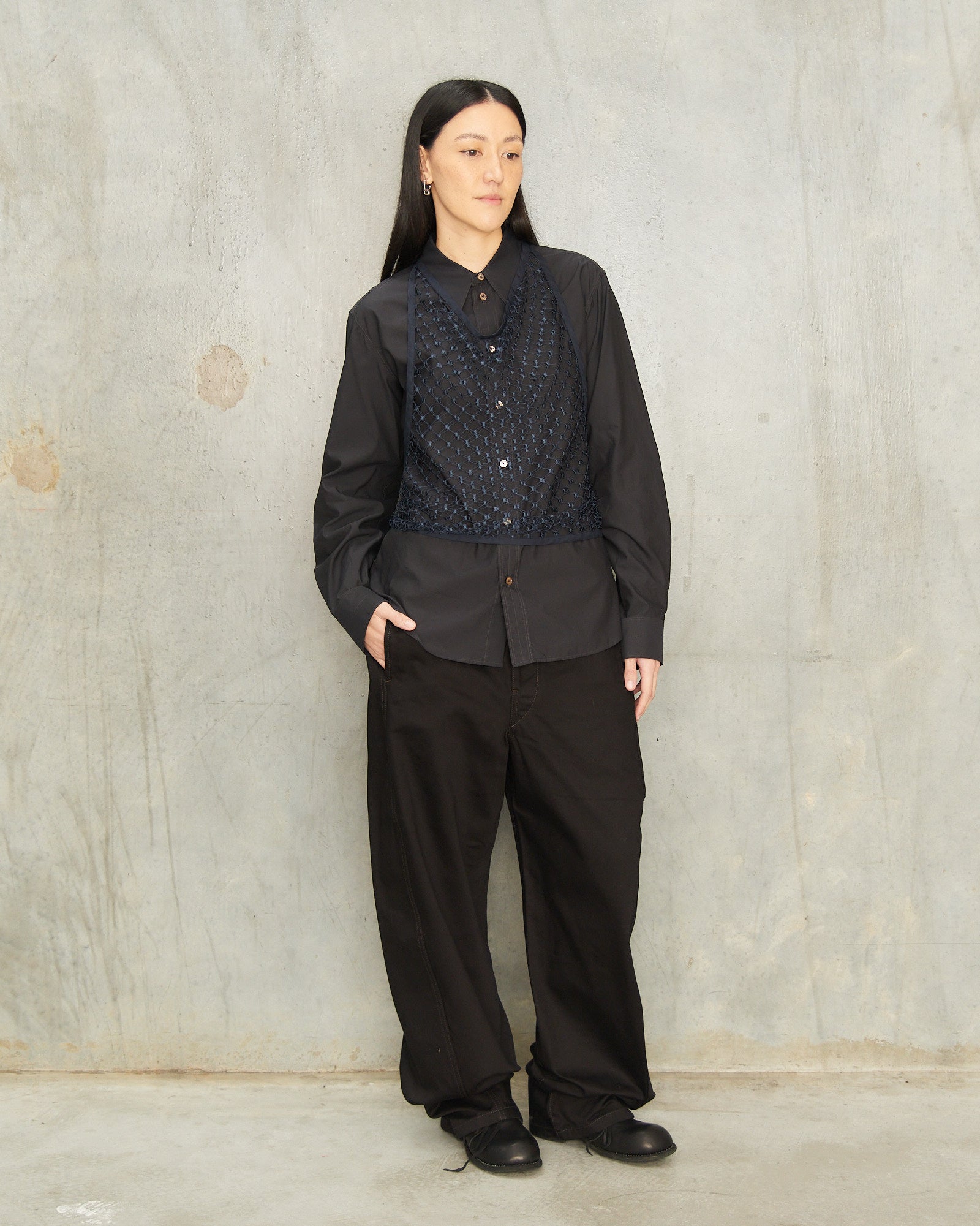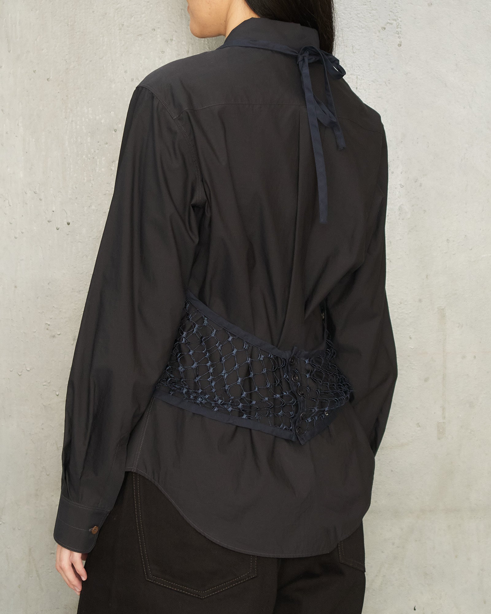 Styled here with the Squid Ink Shirt worn beneath and Black Twisted Belted Pants by Lemaire.