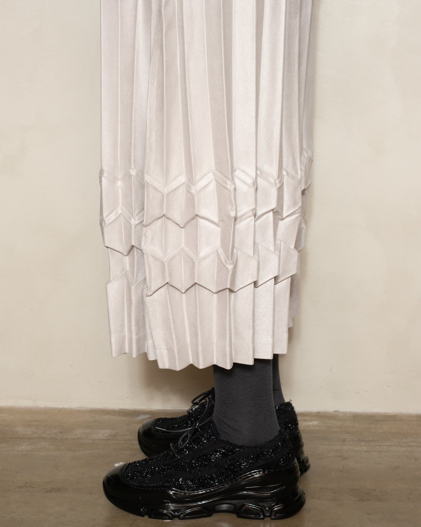 Light Grey Cube Pleat Trouser