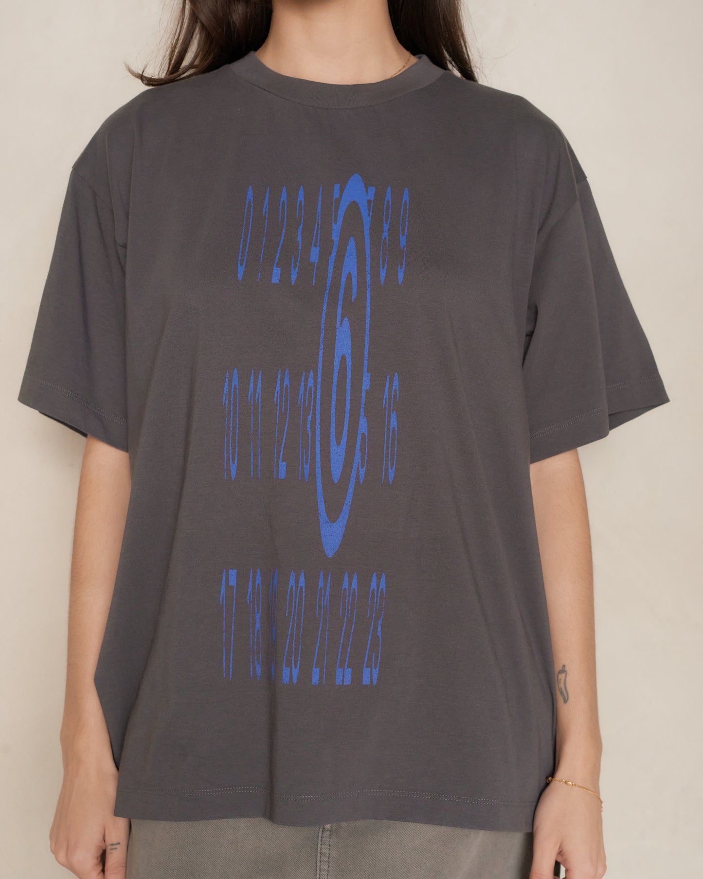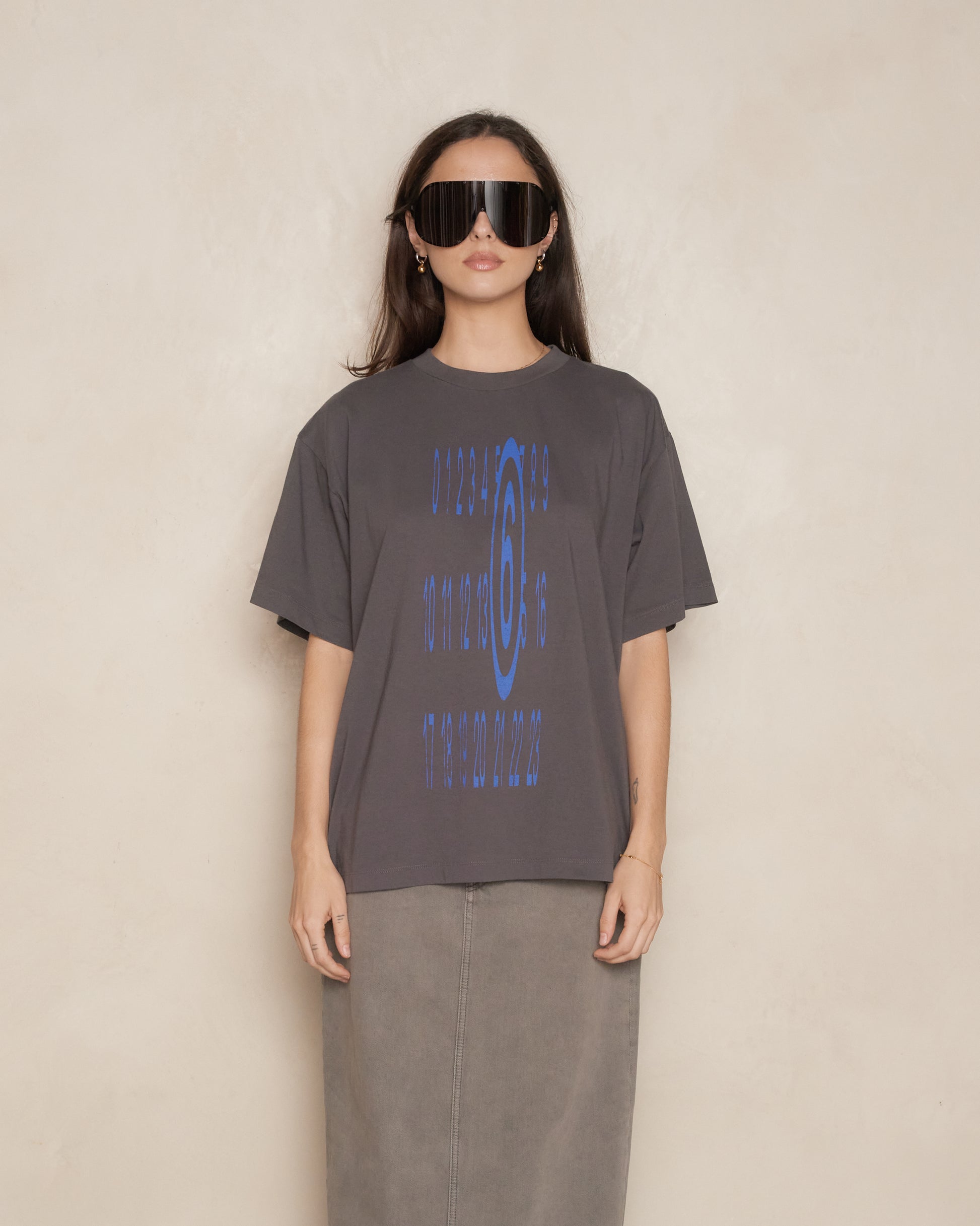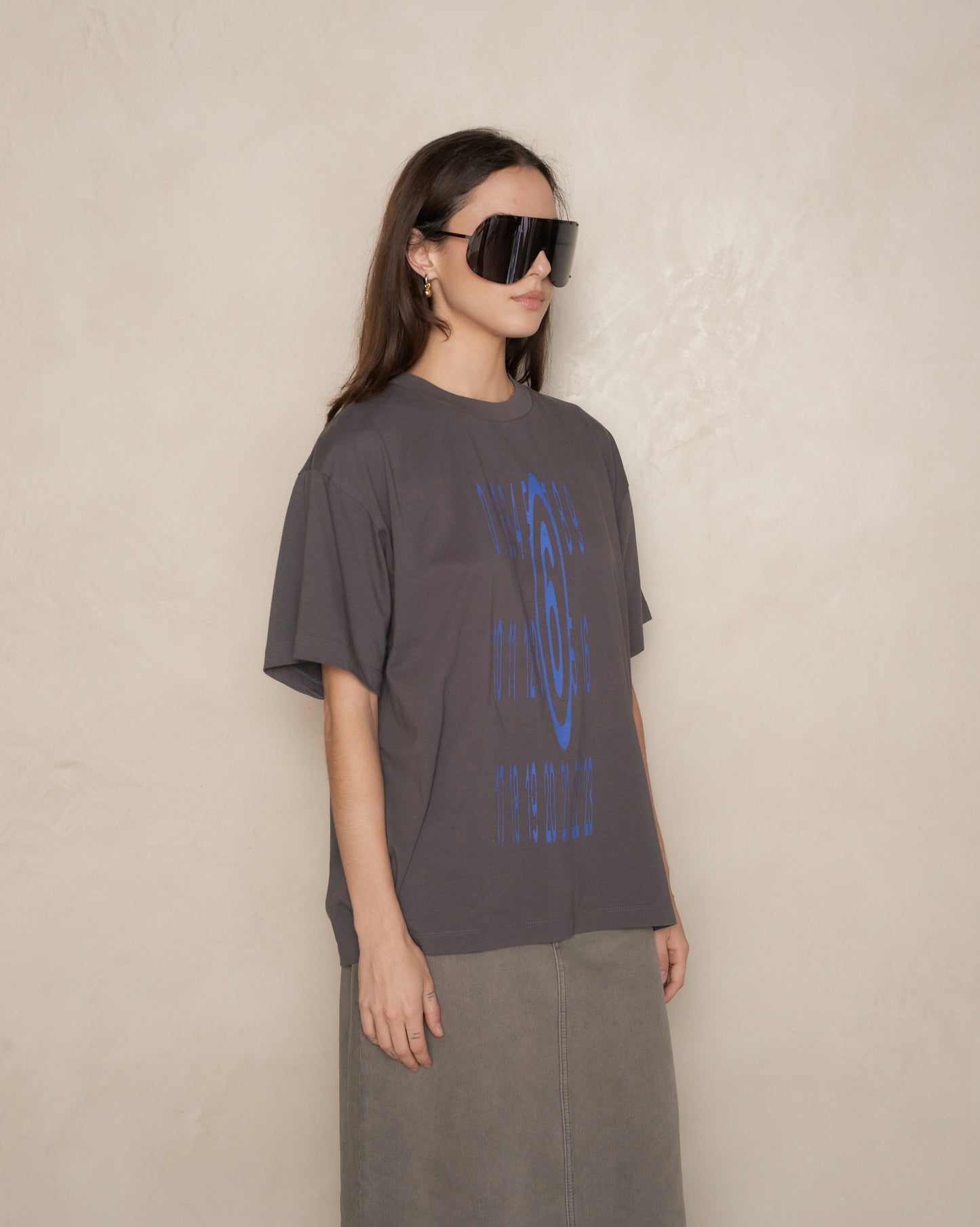 Logo T-shirt by MM6 Maison Margiela in dark grey.