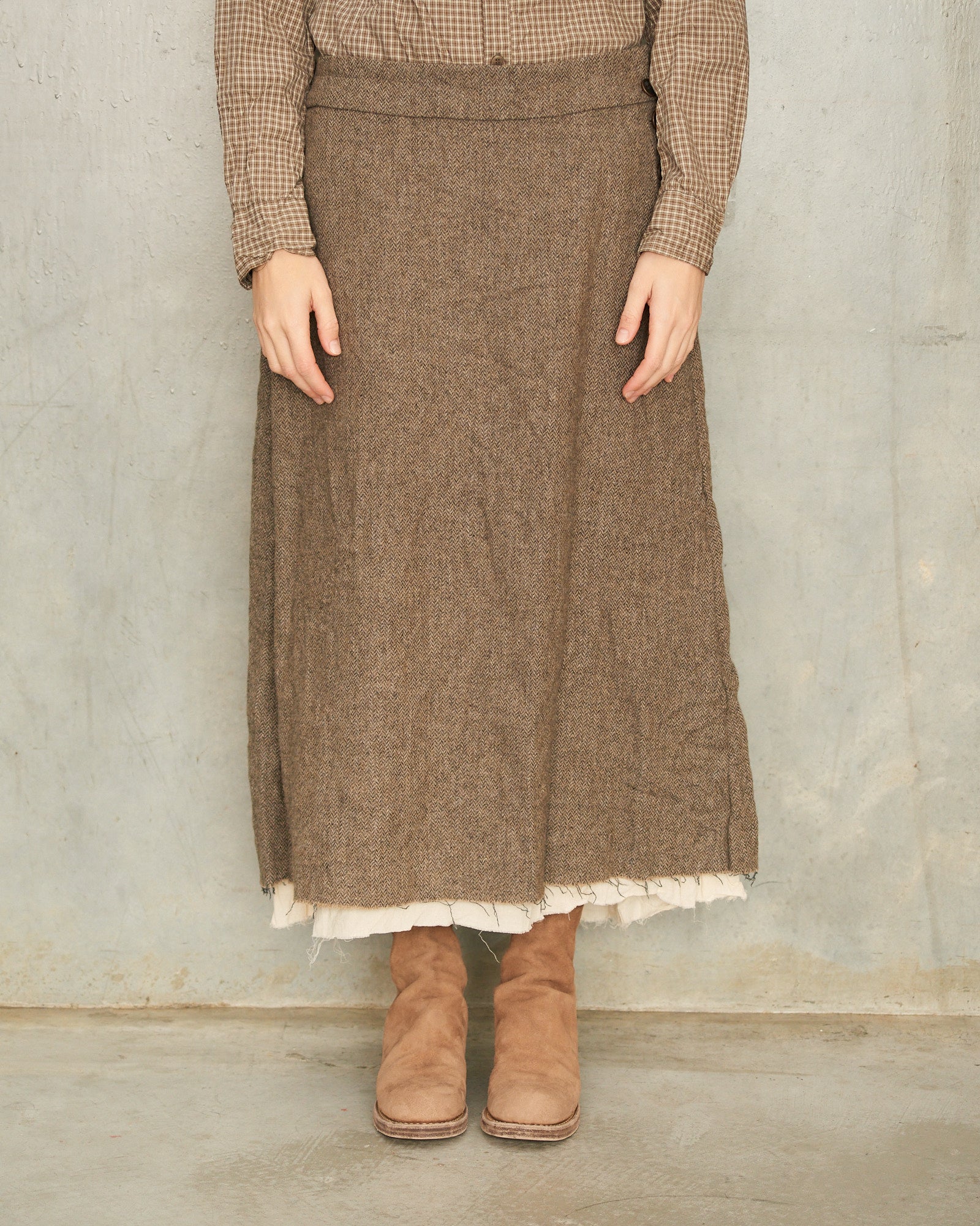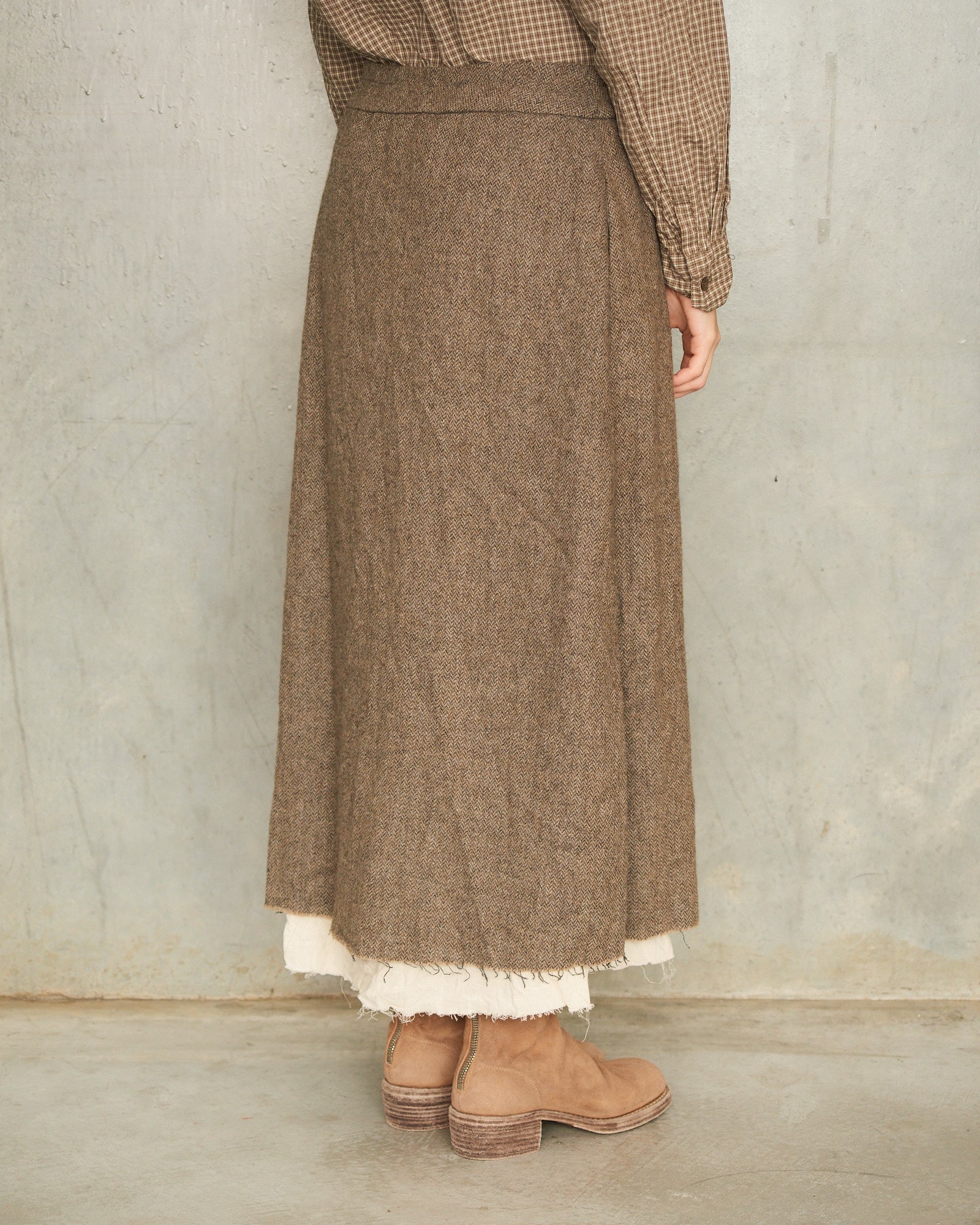 Beige Eco Wool Herringbone Skirt