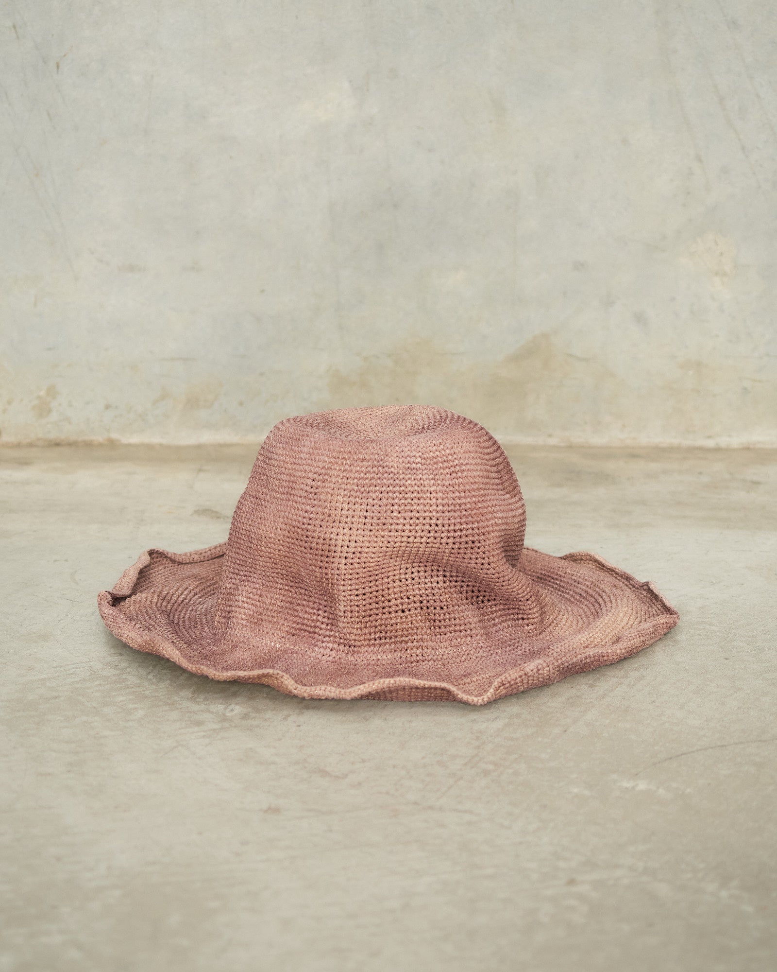 Isle paper hat by Reinhard Plank in vino. Handcrafted brimmed hat in straw, designed with a malleable and effortlessly sculpted shape.