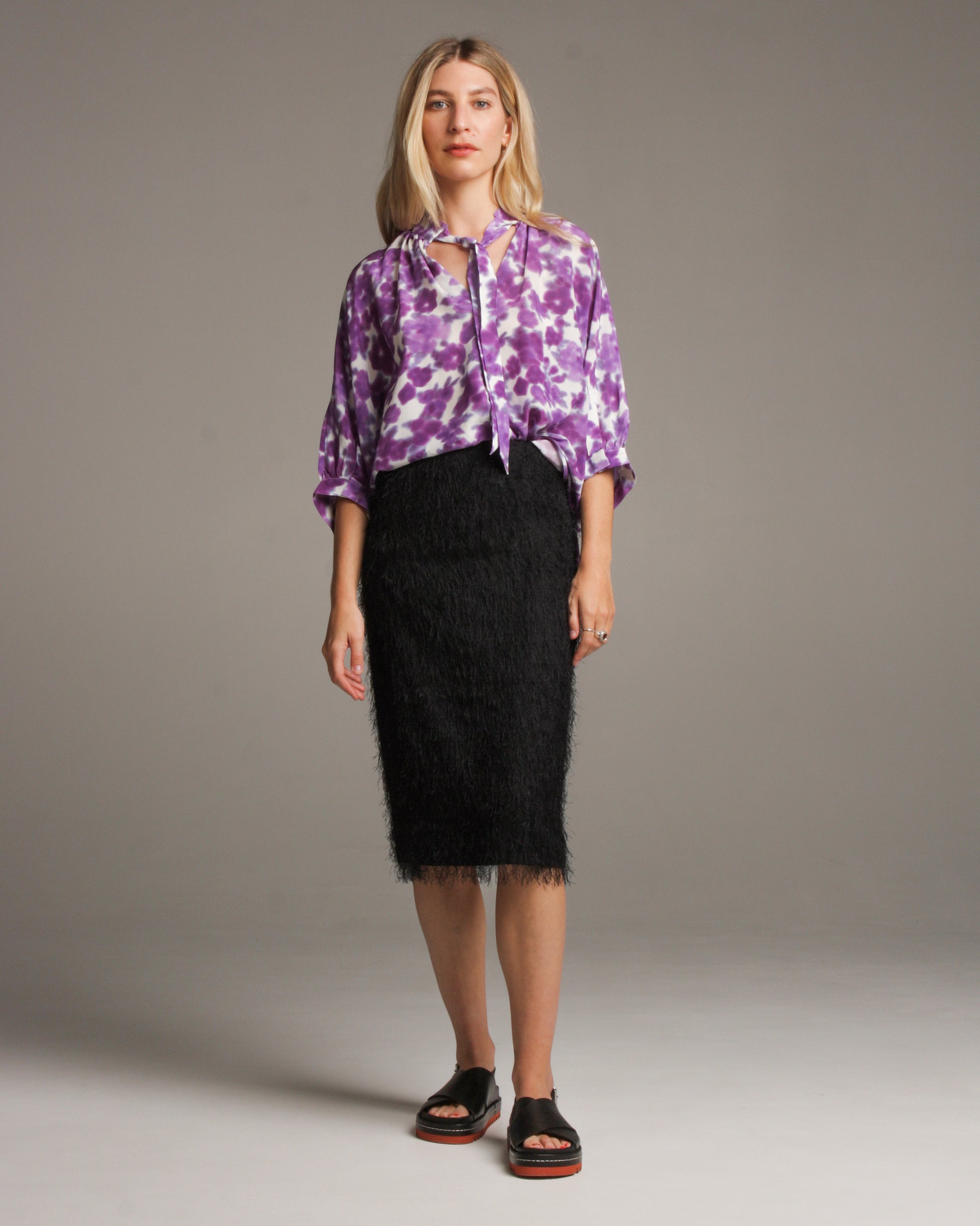 Salim fringed skirt by Christian Wijnants in black. Fitted pencil style with chunky central zip at the rear. Delicate fringing covers the piece to create a dynamic detail, gently shifting when worn.