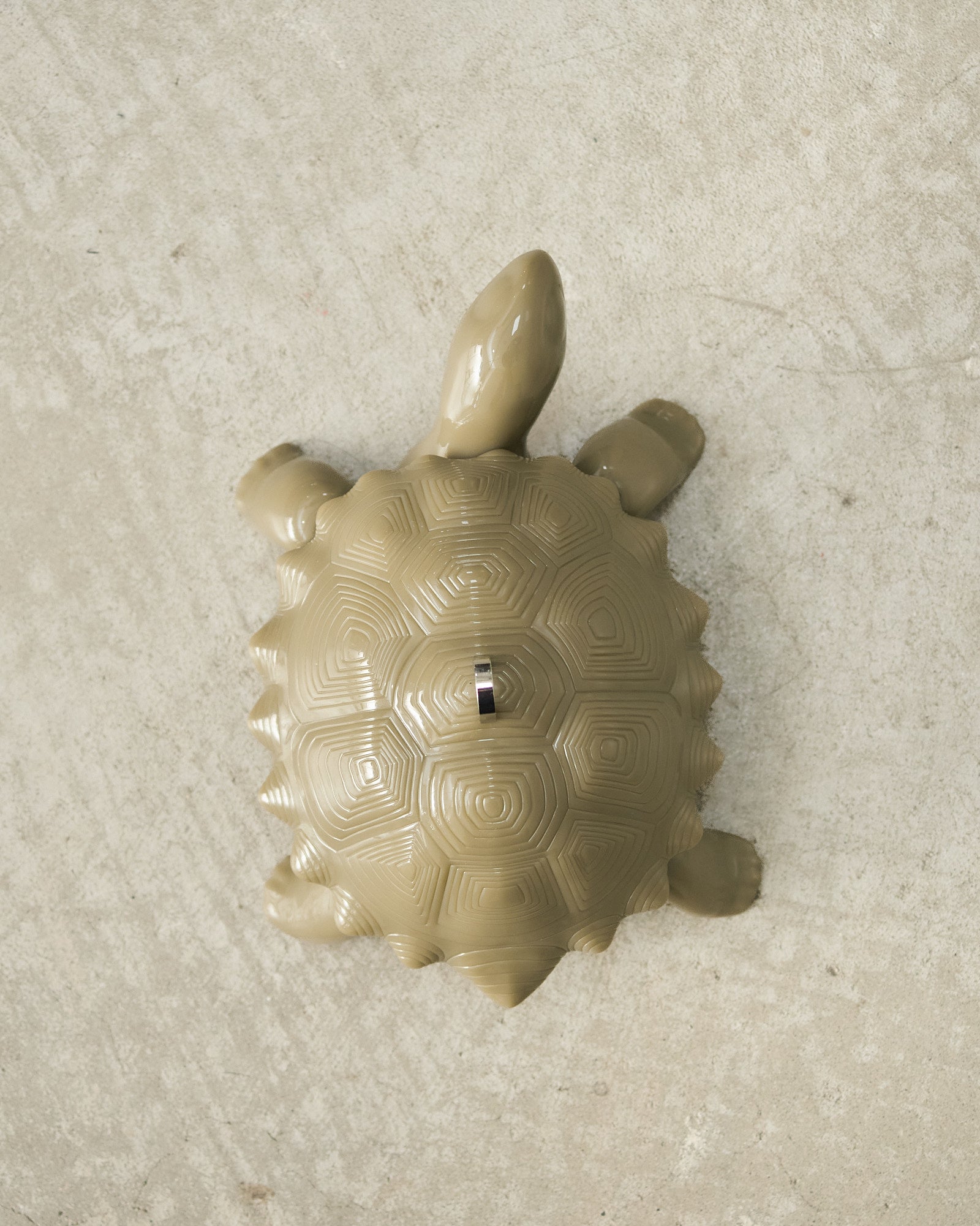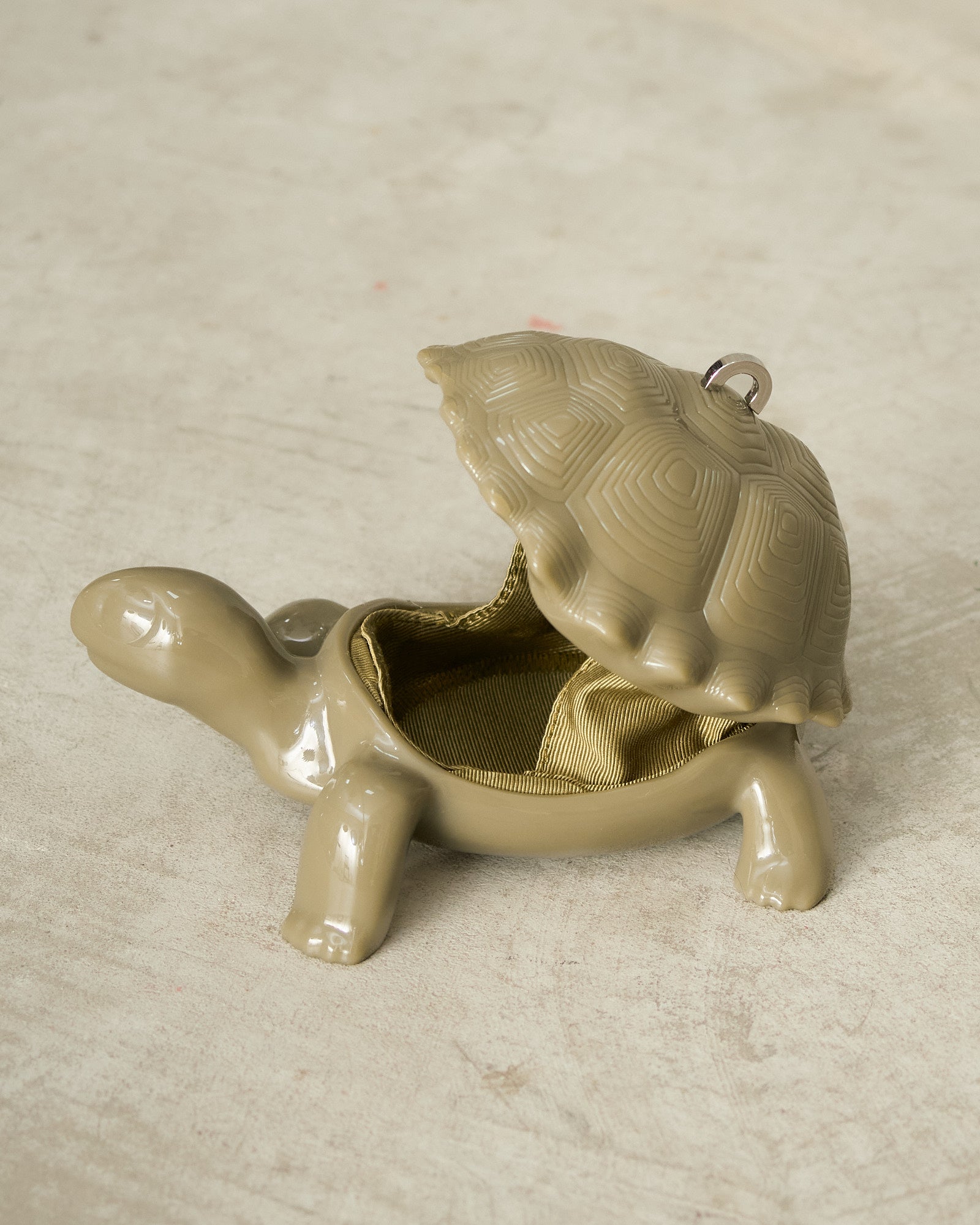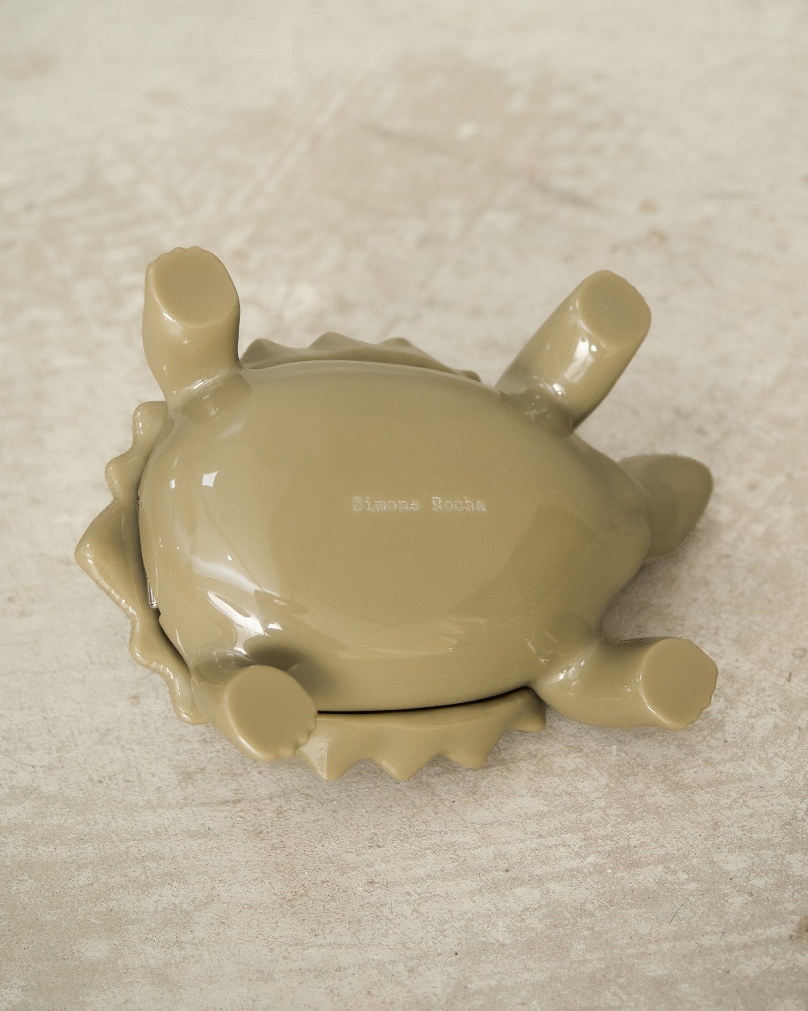 Tortoise bag by Simone Rocha in khaki. From the AW25 Tortoise and the Hare collection, this playful reimagining of the signature perspex bag takes the form of a sculptural tortoise. Finished with a detachable leather strap and magnetic shell closure, it embodies Rocha’s fable-like blend of whimsy and refinement.