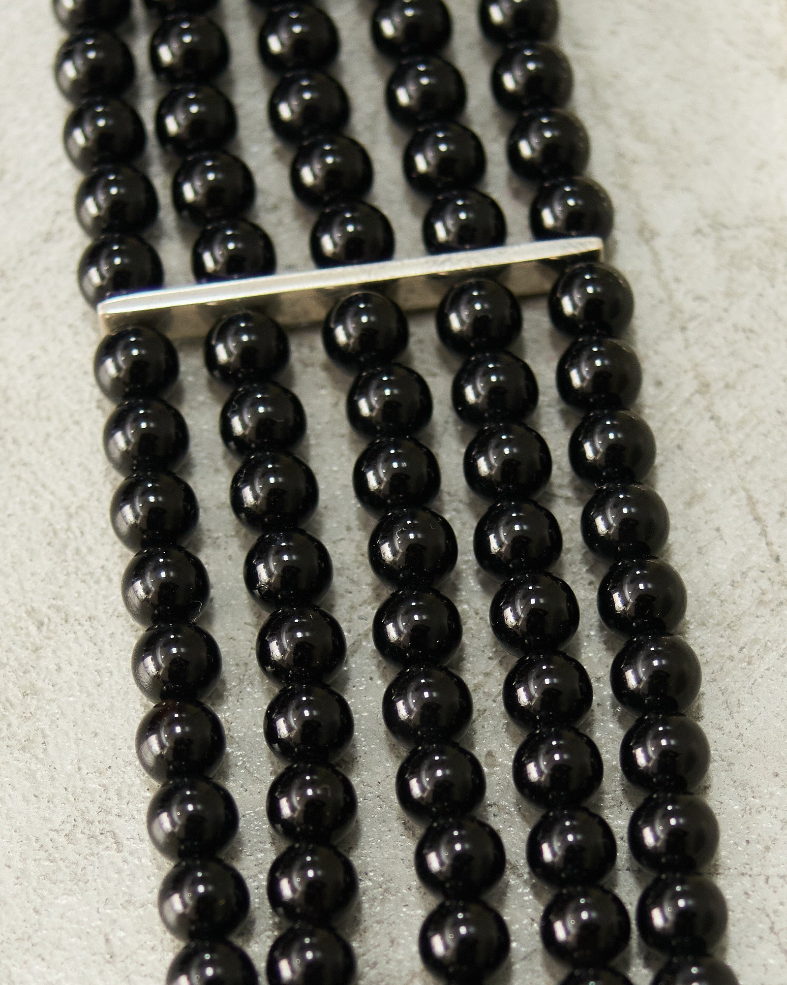 Lilian choker by Sophie Buhai in onyx. Uniform strands of glossy onyx beads create a bold, layered choker. Secured at the nape with an adjustable sterling silver closure.