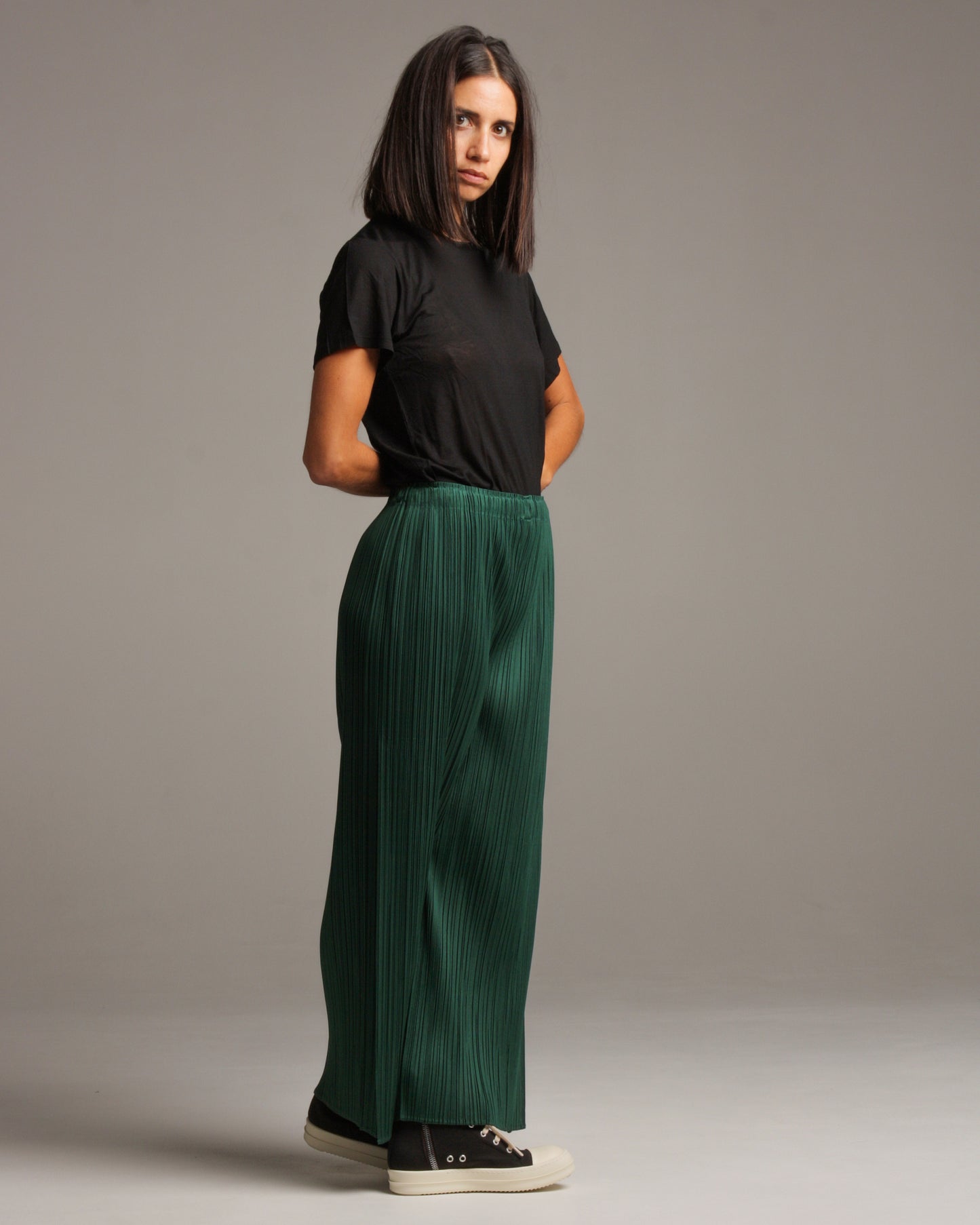 Bamboo tee by Baserange in black. Supremely soft bamboo jersey falls from a crew neckline for a relaxed fit. Delicately thin and semi sheer fabrication defines this endlessly reliable piece.