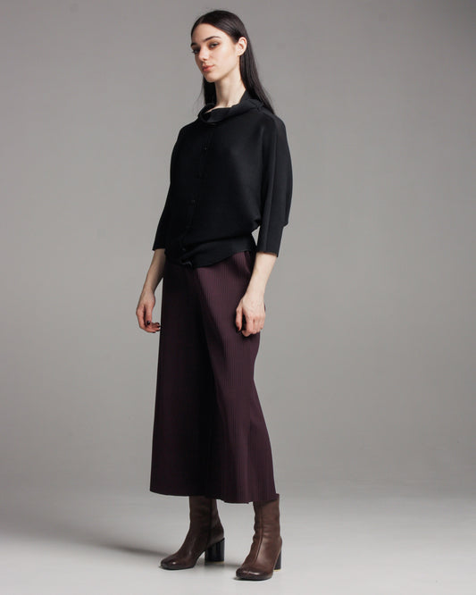 Aubergine Fine Knit Wide Leg Pleated Pants