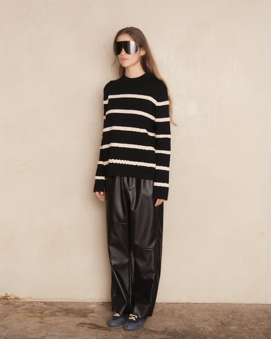 Black and White Kadit Striped Crew Neck Sweater
