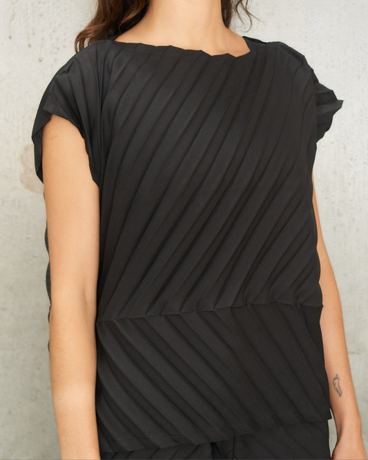 Sold outBlack Angle Fold Pleats Top