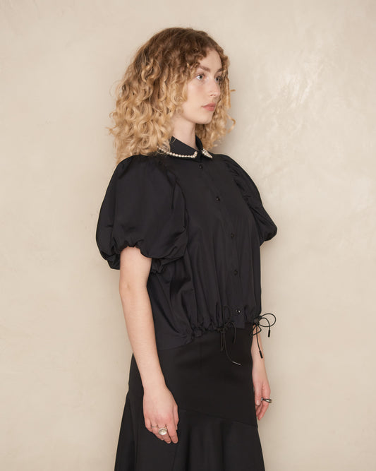 Black and Pearl Puff Sleeve Toggle Shirt