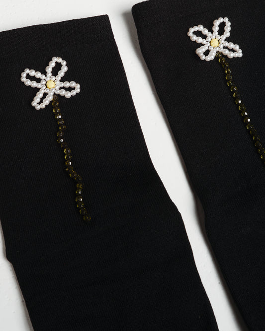 Sold outBlack Beaded Daisy Ankle Socks