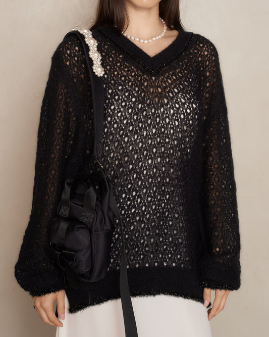 Black Beaded Classic Bow Crossbody Bag