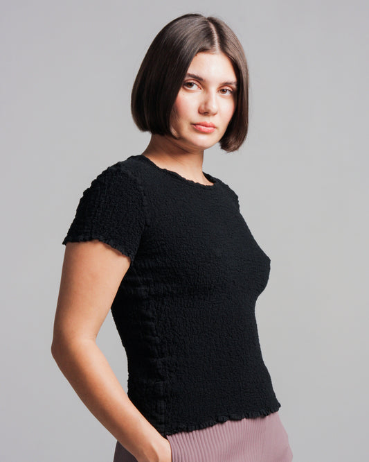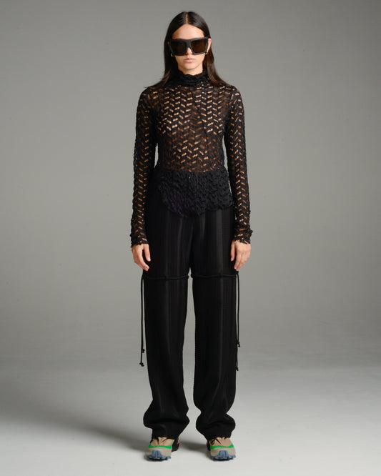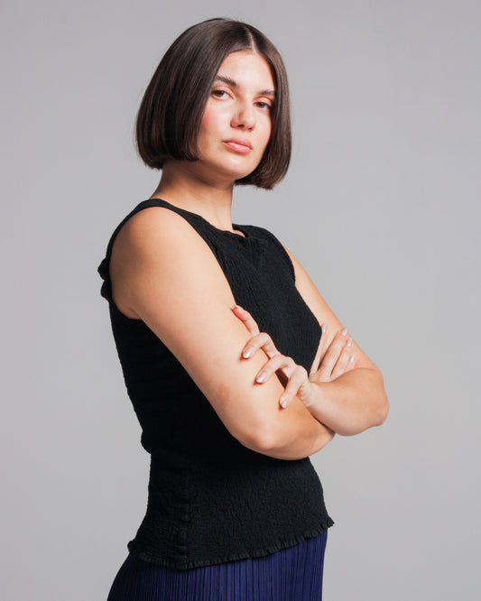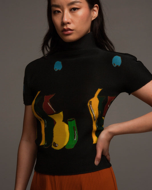 Black Ceramics High Neck Micropleated Top