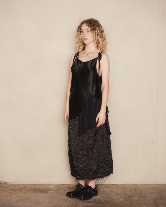Sold outBlack Draped Satin Bias Slip Top