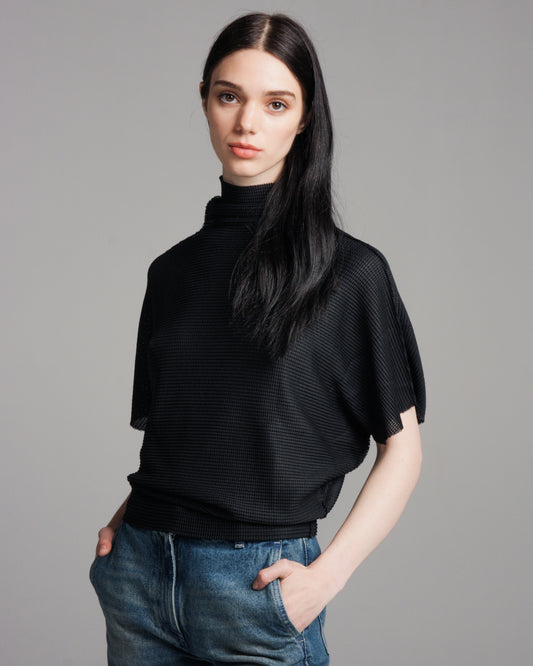 Sold outBlack Dolman Stretch Pleats Top