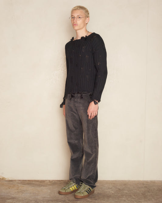 Sold outBlack Distressed Bow Sweater