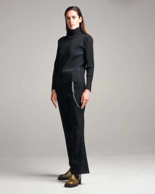 Black Fine Knit Pleated High Neck Top