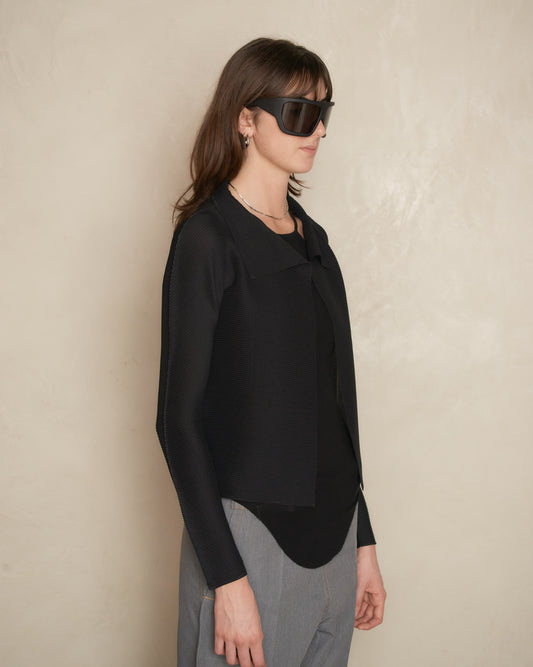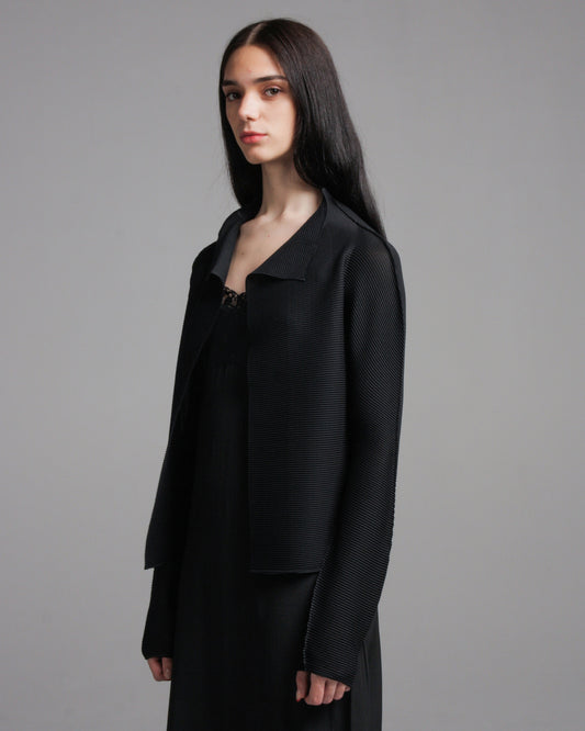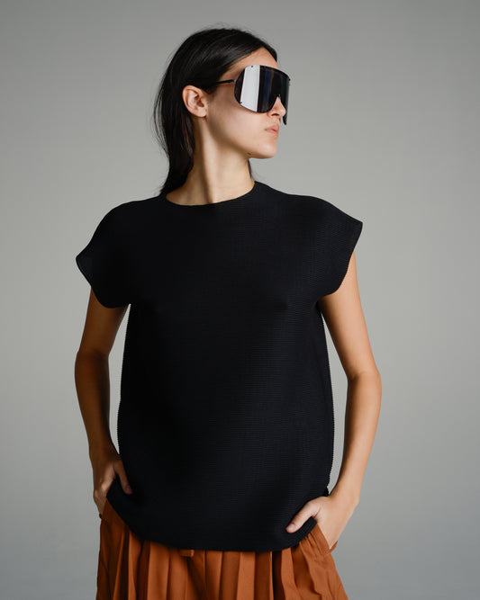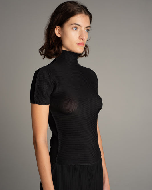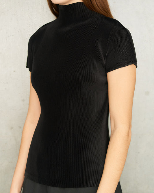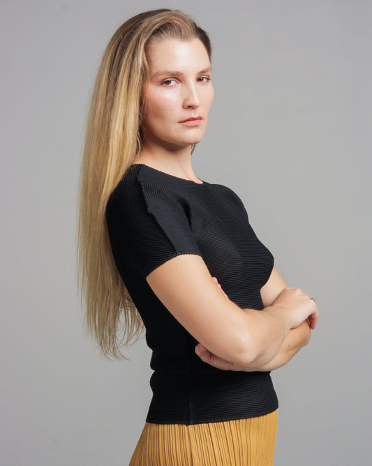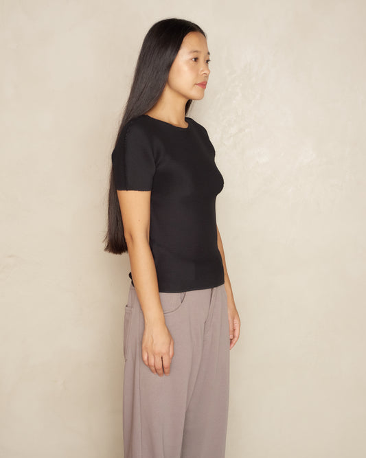 Sold outBlack Micro Pleated Short Sleeve Tee