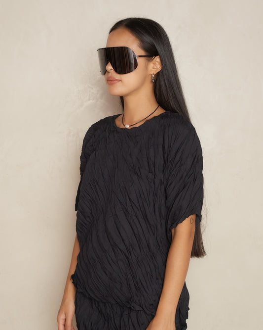 Sold outBlack Whip Pleat Long Sleeve Shirt