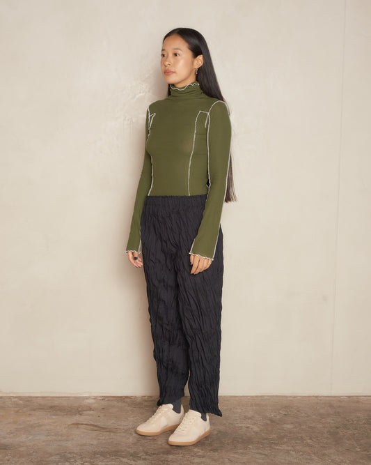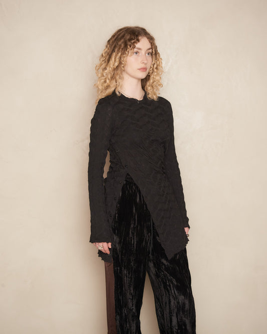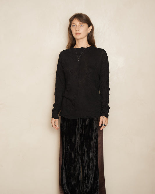 Sold outBlack Wool Crinkle Long Sleeve Top
