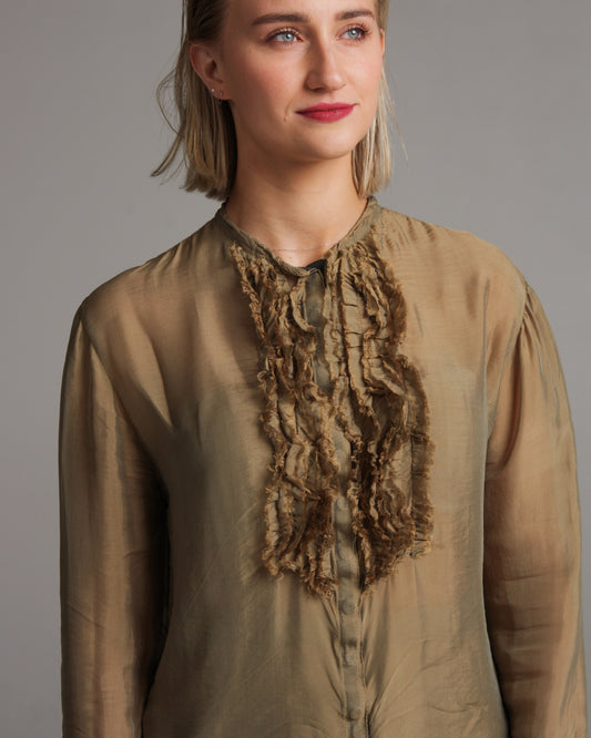 Sold outAntique Gold Chiffon Tuxedo Shirt
