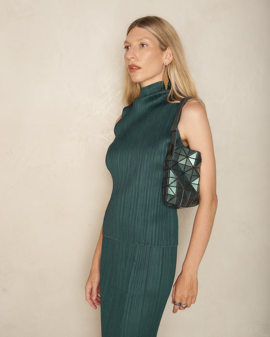 Dark Green Leaf Pleats Bag