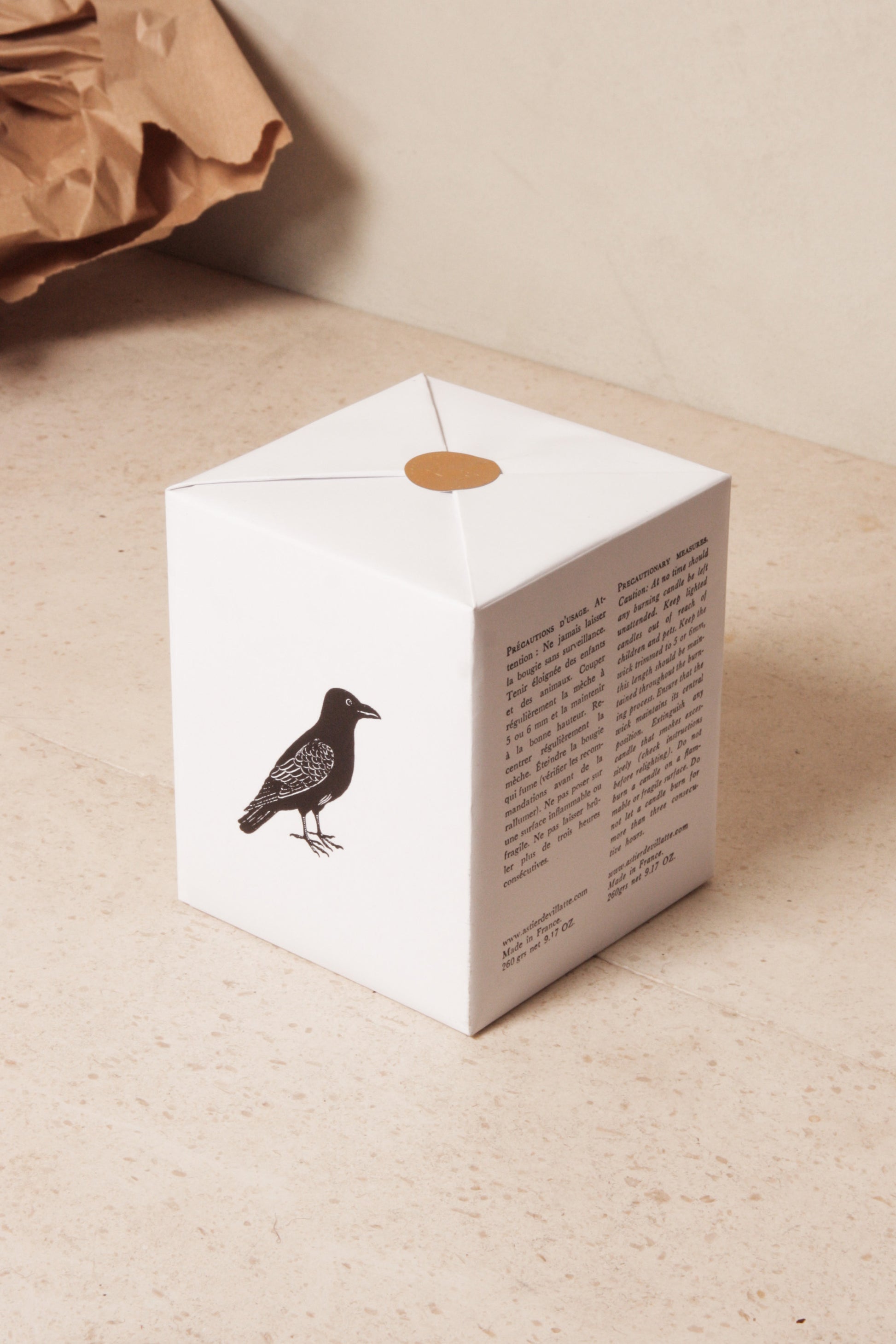 100% natural soy and bees wax with a cotton wick. Glass vessel handblown in Vinci, Tuscany - the birthplace of Leonardo da Vinci. Label and packaging printed in letterhead and type-set by the last remaining Master Printer in Paris. Each candle is 260 grams giving it a burn time of approximately 60 hours.