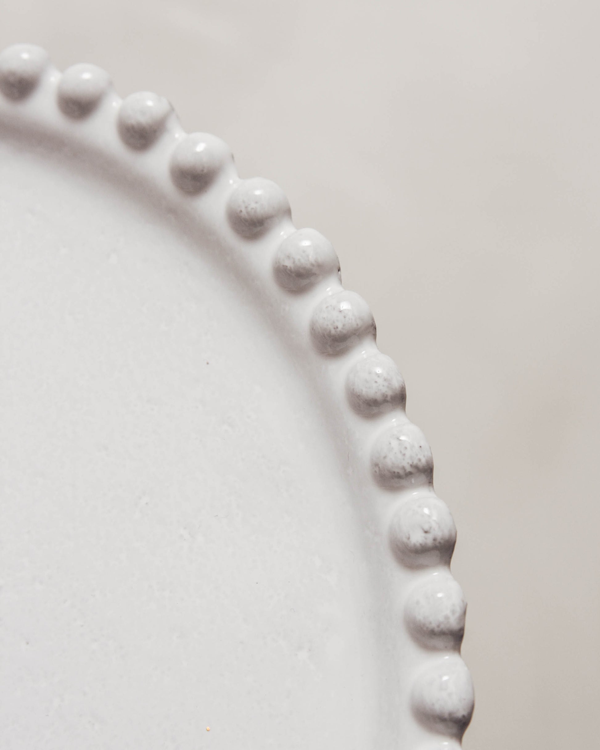 Adelaide side plate by Astier de Villatte. Smooth, round plate with a decorative outer rim. Complement with Adelaide soup plate and dinner plate for a matching dining set.