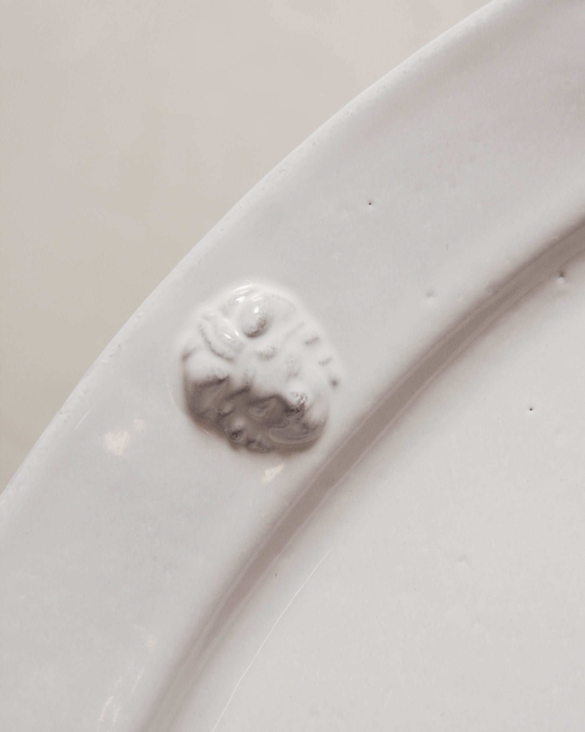Small oval Alexandre platter by Astier de Villatte. Minimal, oval serving plate with Alexandre figurehead at the crest.