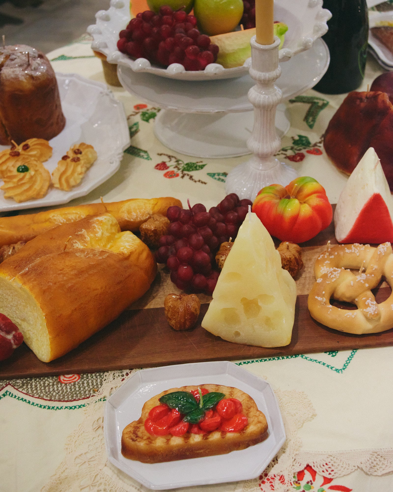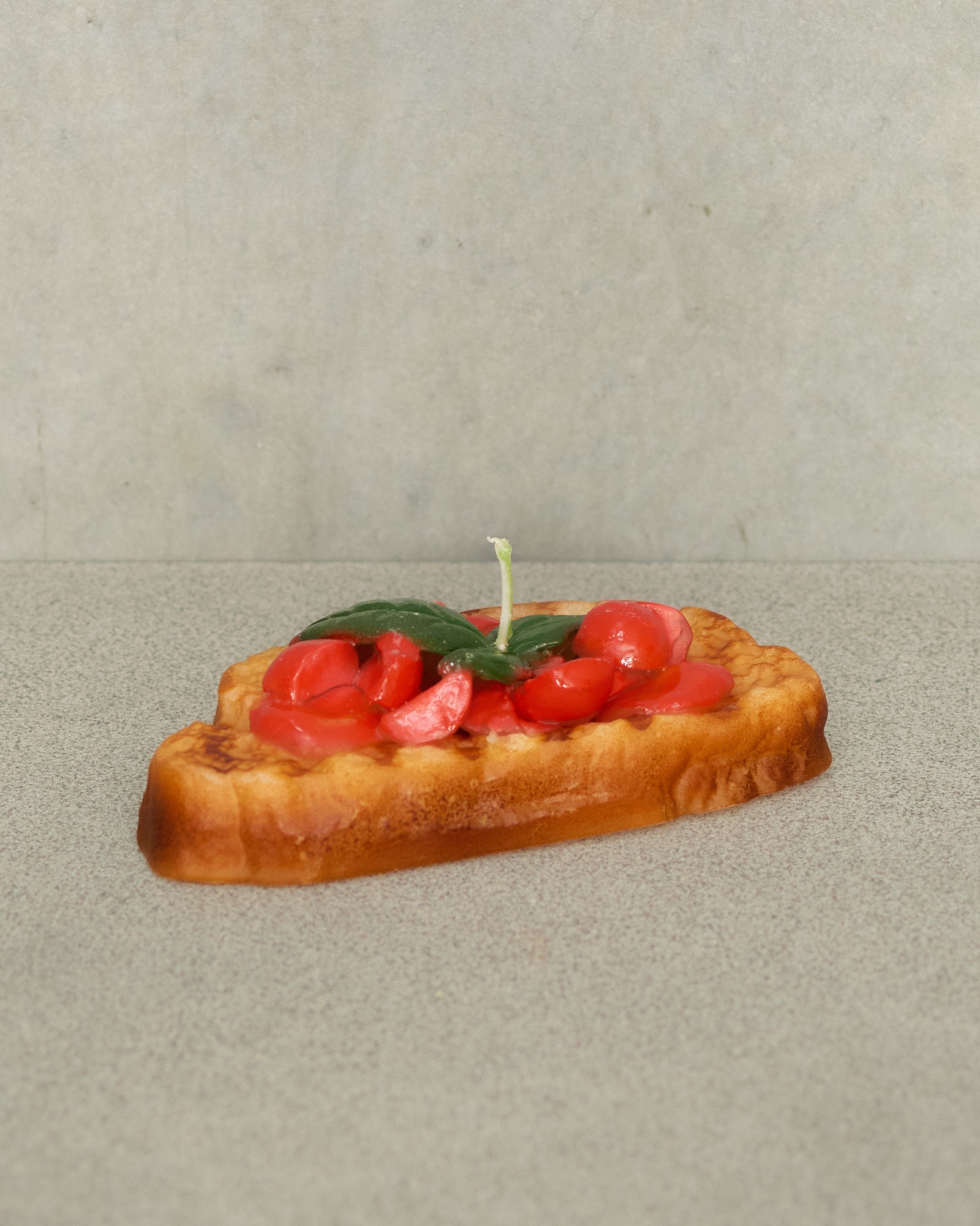 Bruscetta candle by Cereria Introna. Life-size with a single wick. Since 1840, Cereria Introna has been hand-crafting candles in Bari, Italy, using techniques passed down through generations. Made from high-quality paraffin wax and a pure cotton wick, it burns cleanly and evenly. Its lifelike design — a hallmark of the Introna atelier — makes it as captivating to display as it is to light. Shaped using traditional molds, each piece carries nearly two centuries of Italian candle-making heritage into your home.