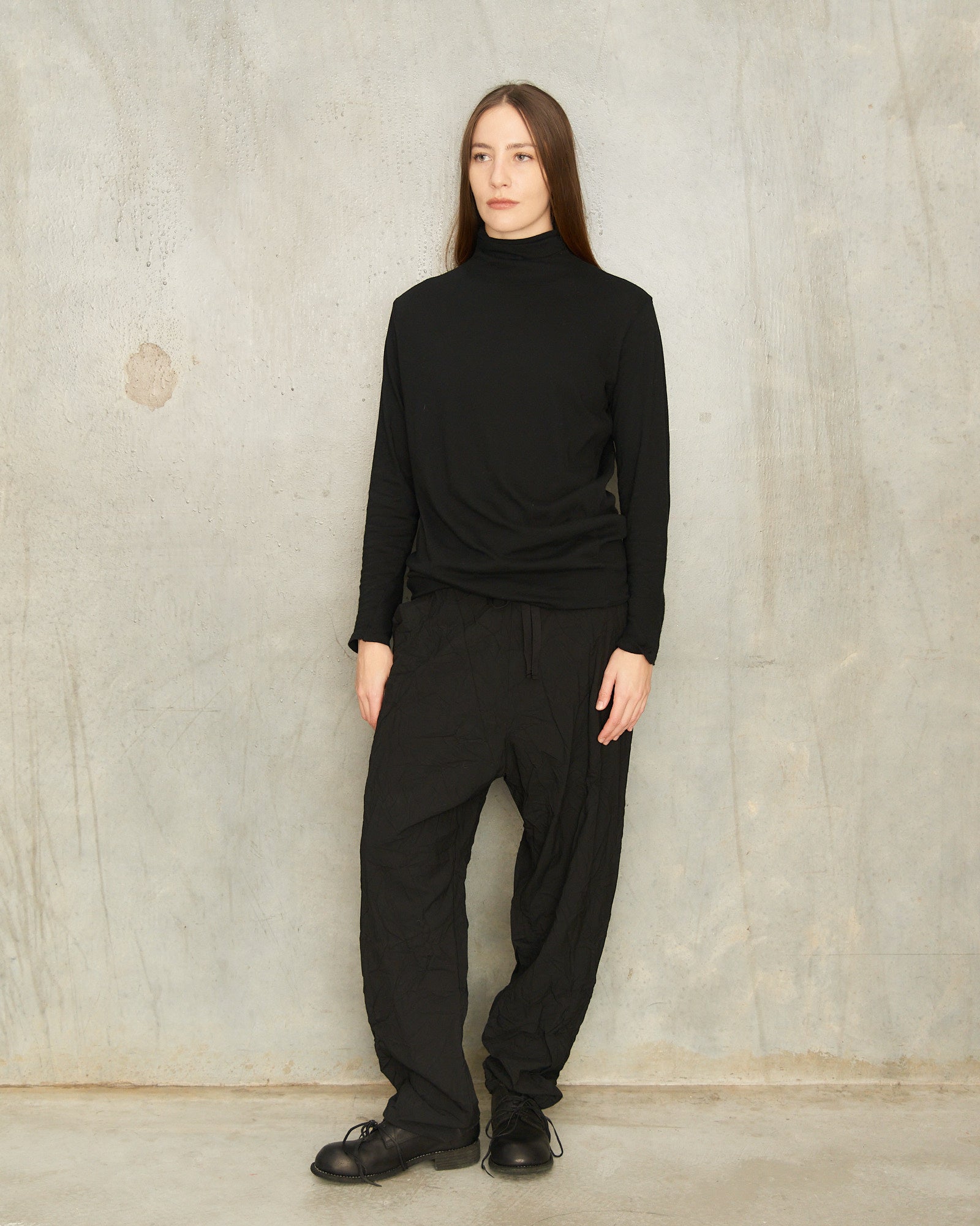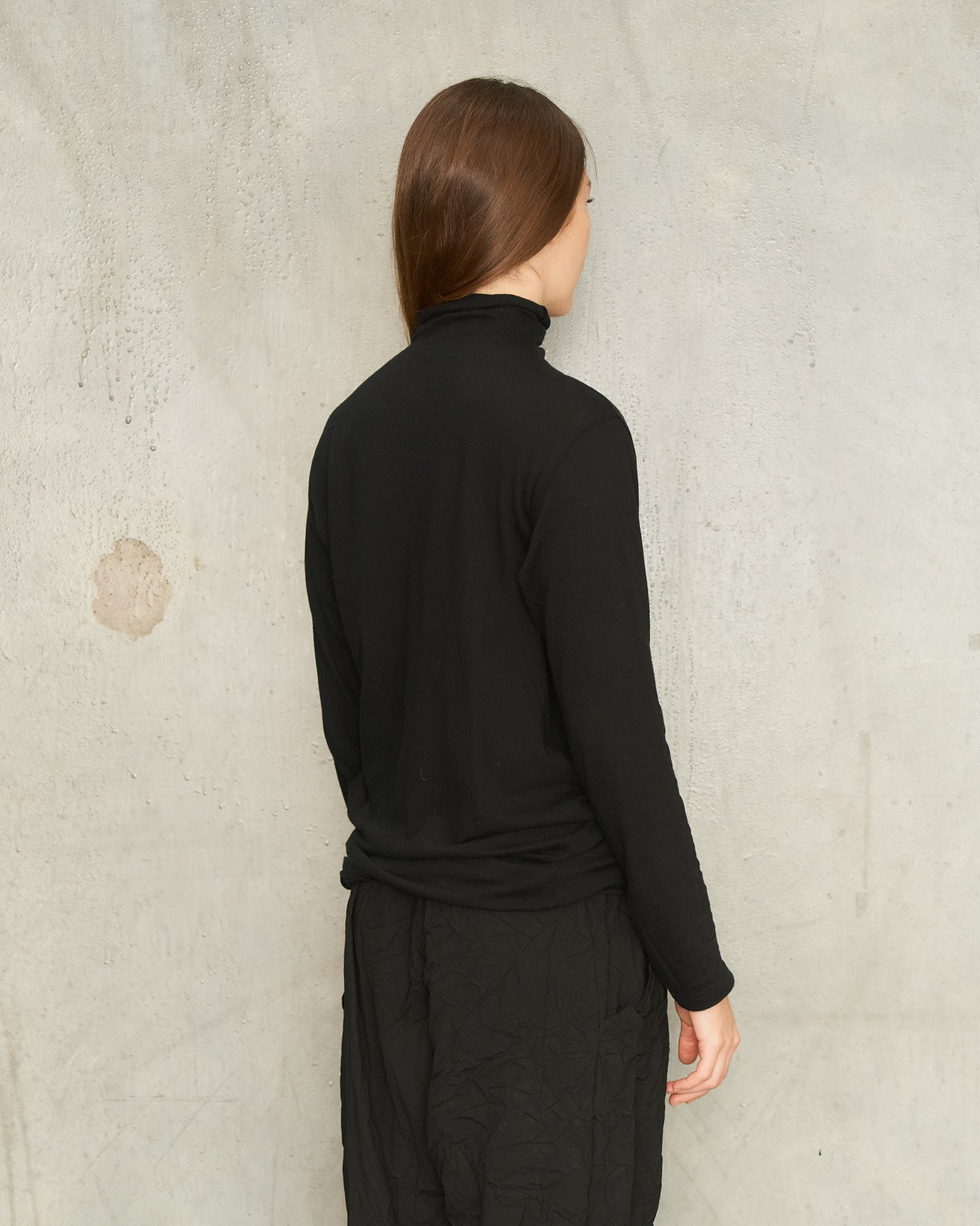 Gauze turtleneck pullover by Pas de Calais in black. Lightweight cotton-wool blend turtleneck with an elegant drape, designed for effortless layering.