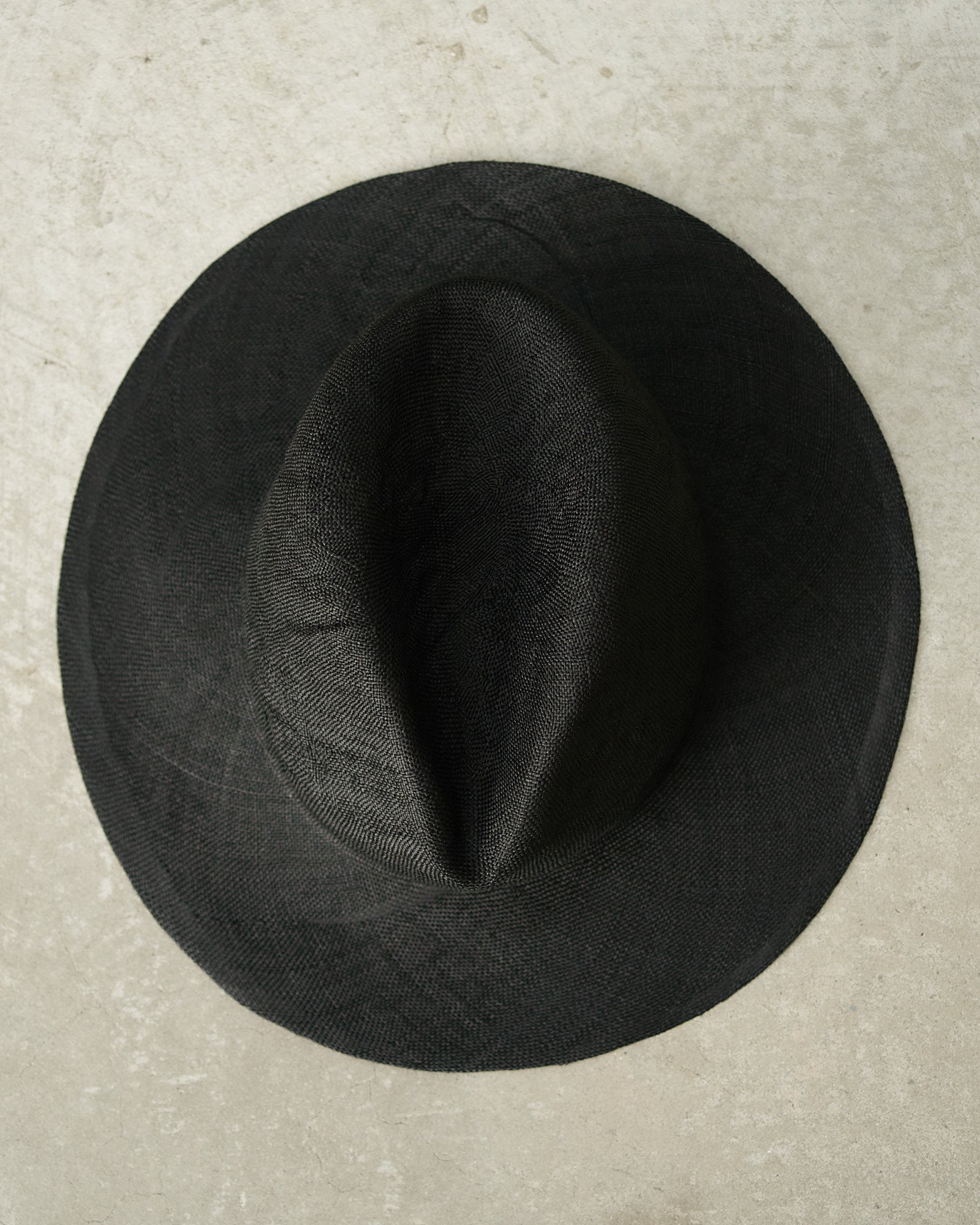 Alba sisal hat by Reinhard Plank in black. Structured hat in tactile straw, crafted with a ridged top and neat brim.