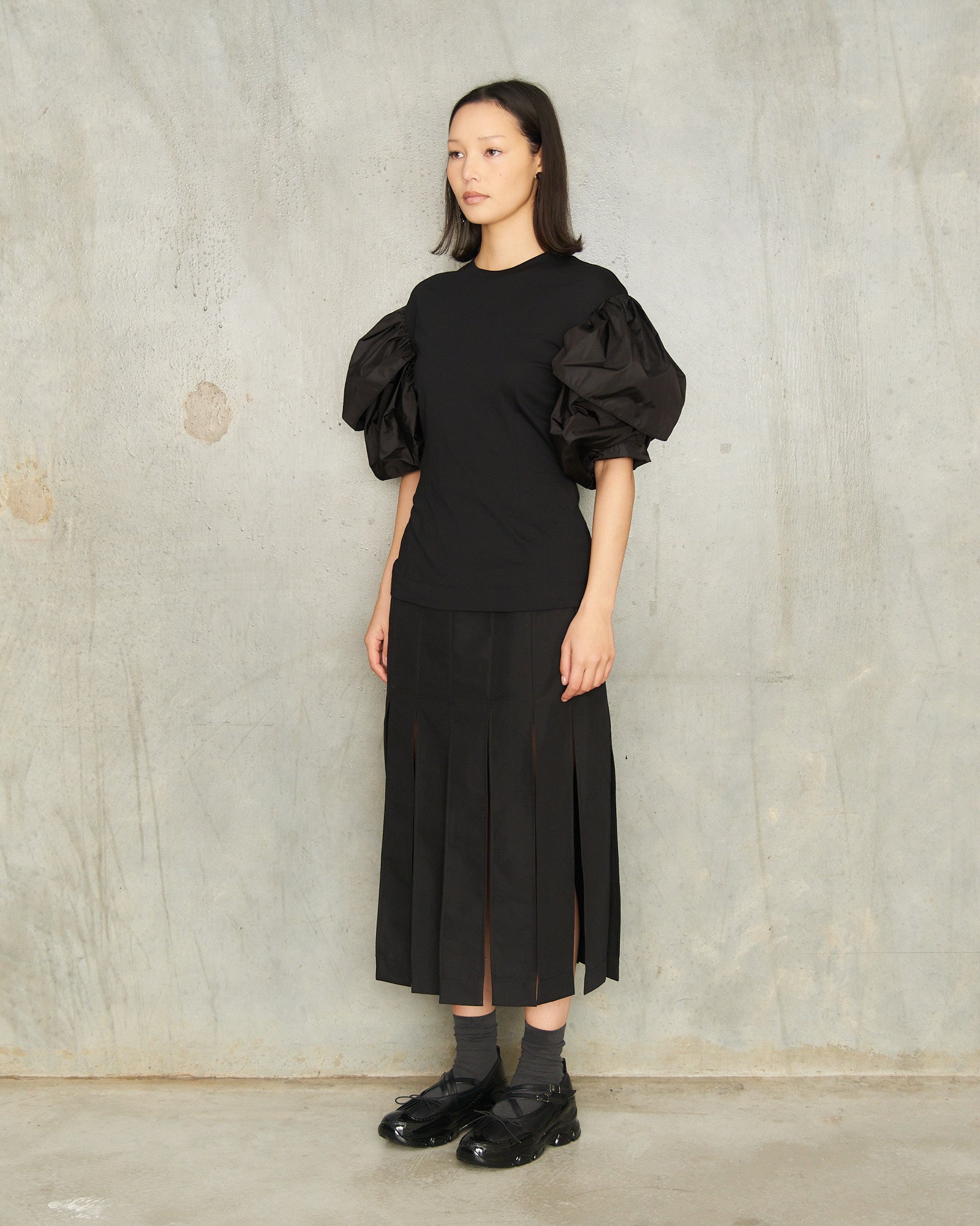 Sculpted petal sleeve T-shirt by Simone Rocha in black.